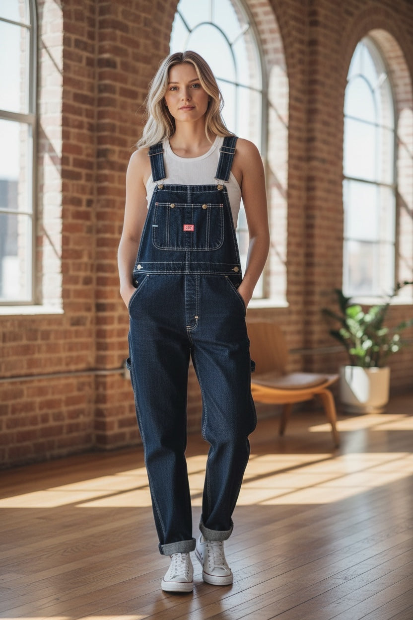 Inspirée du vestiaire masculin, cette salopette au style décalé affirme une féminité moderne.