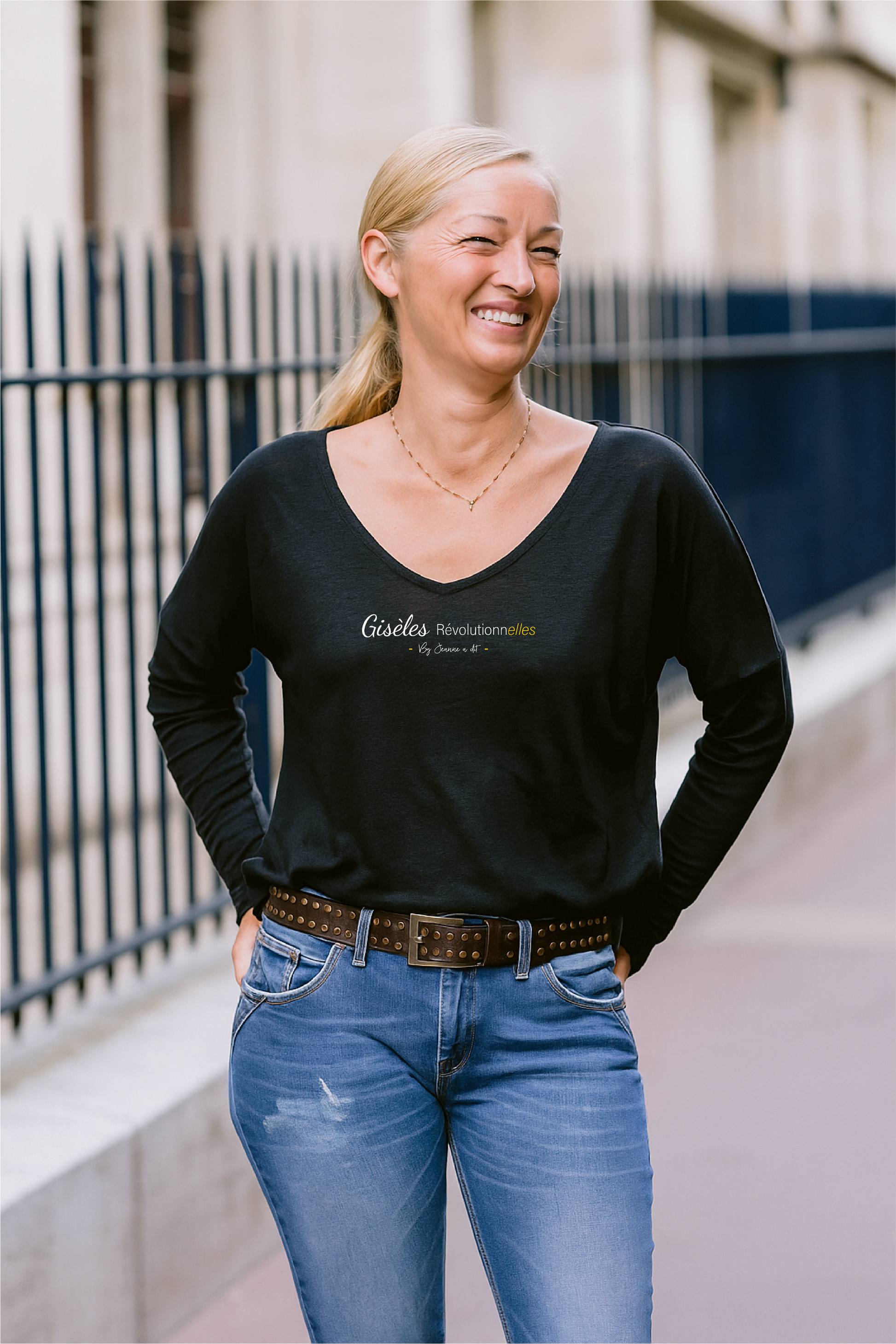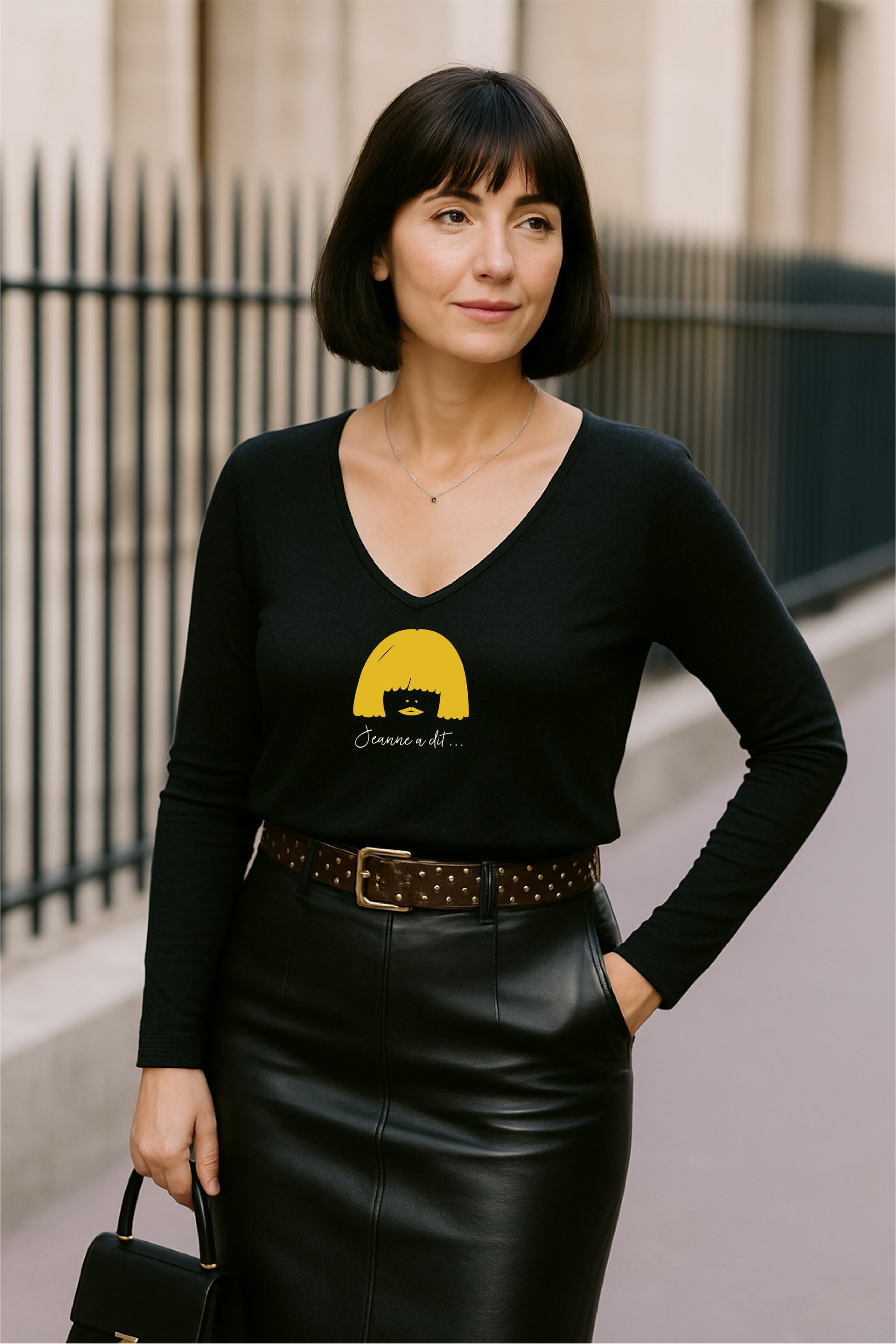 El excepcional top de lino y algodón, absolutamente suave, fabricado en Normandía 🇫🇷 . Este modelo de manga larga, diseñado en Rouen y cuidadosamente confeccionado en Francia, se distingue por su corte amplio y refinado, realzado por mangas generosas sutilmente ceñidas en los puños. Elegantemente adornada con un delicado pasador de madera al final de su escote en V, esta prenda combina comodidad y sofisticación. Disponible en negro intenso, encarna la esencia de la elegancia atemporal con un toque de autenticidad artesanal.