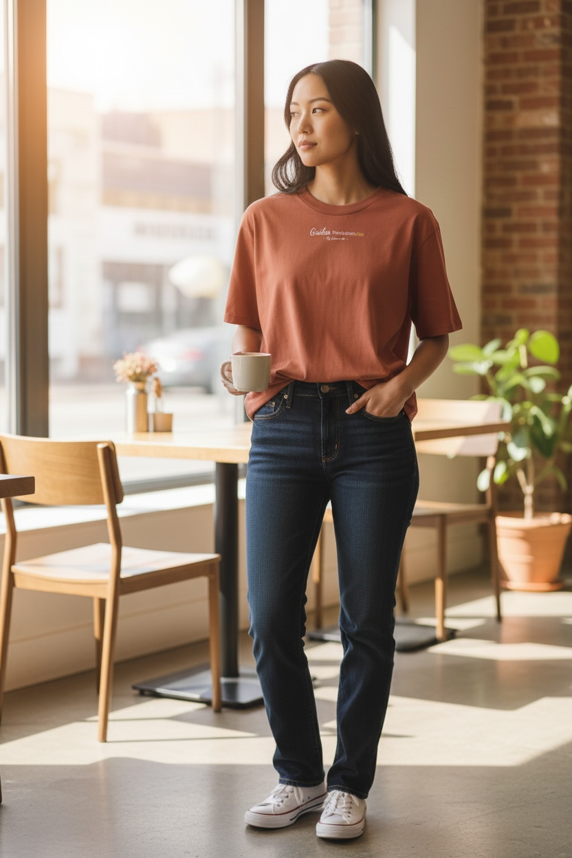 Sa forme est plutôt ample mais pas trop, un essentiel facile à porter, qui laisse respirer le corps et le style