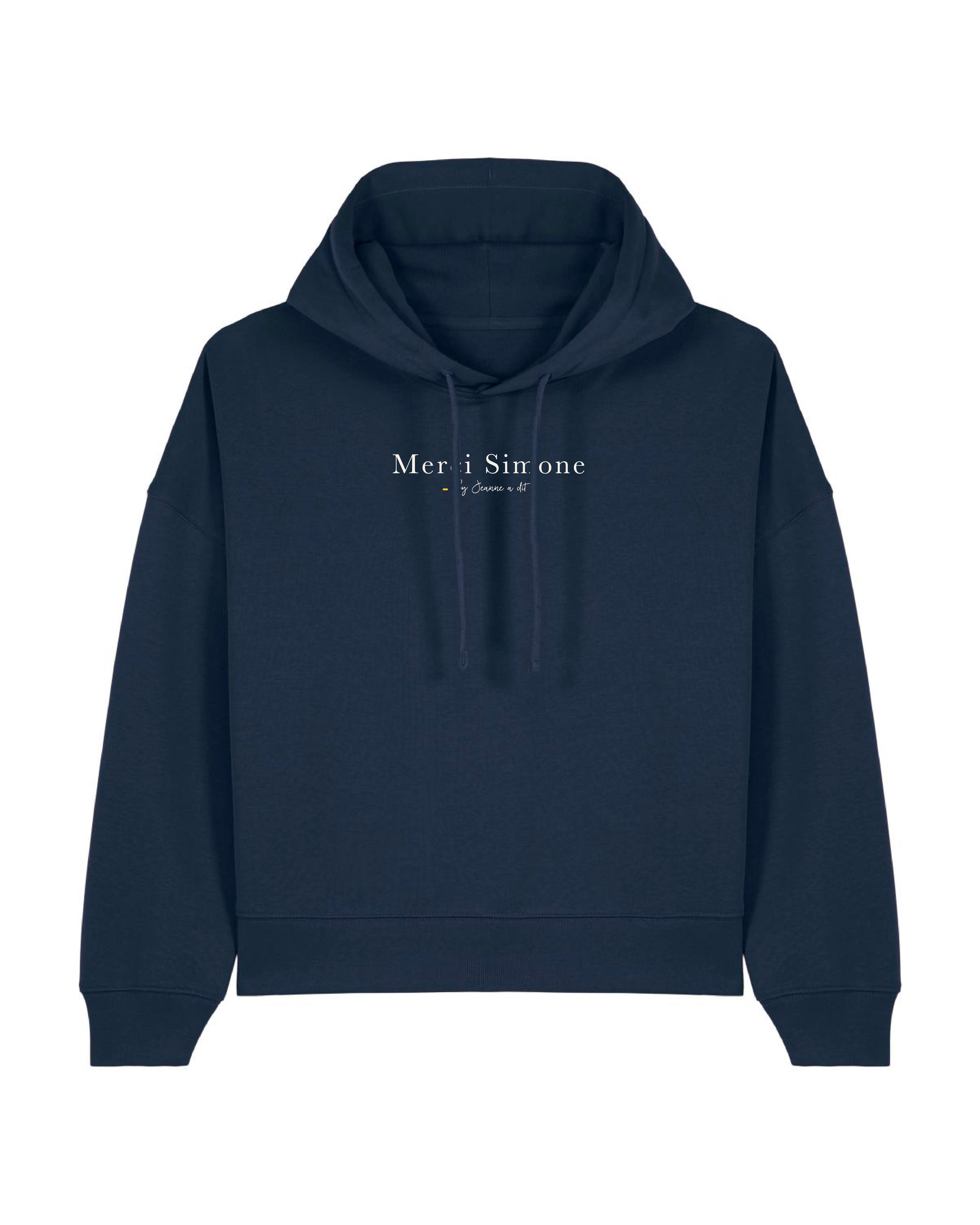 Sweat BOXY femme en coton bio à capuche "Merci Simone"