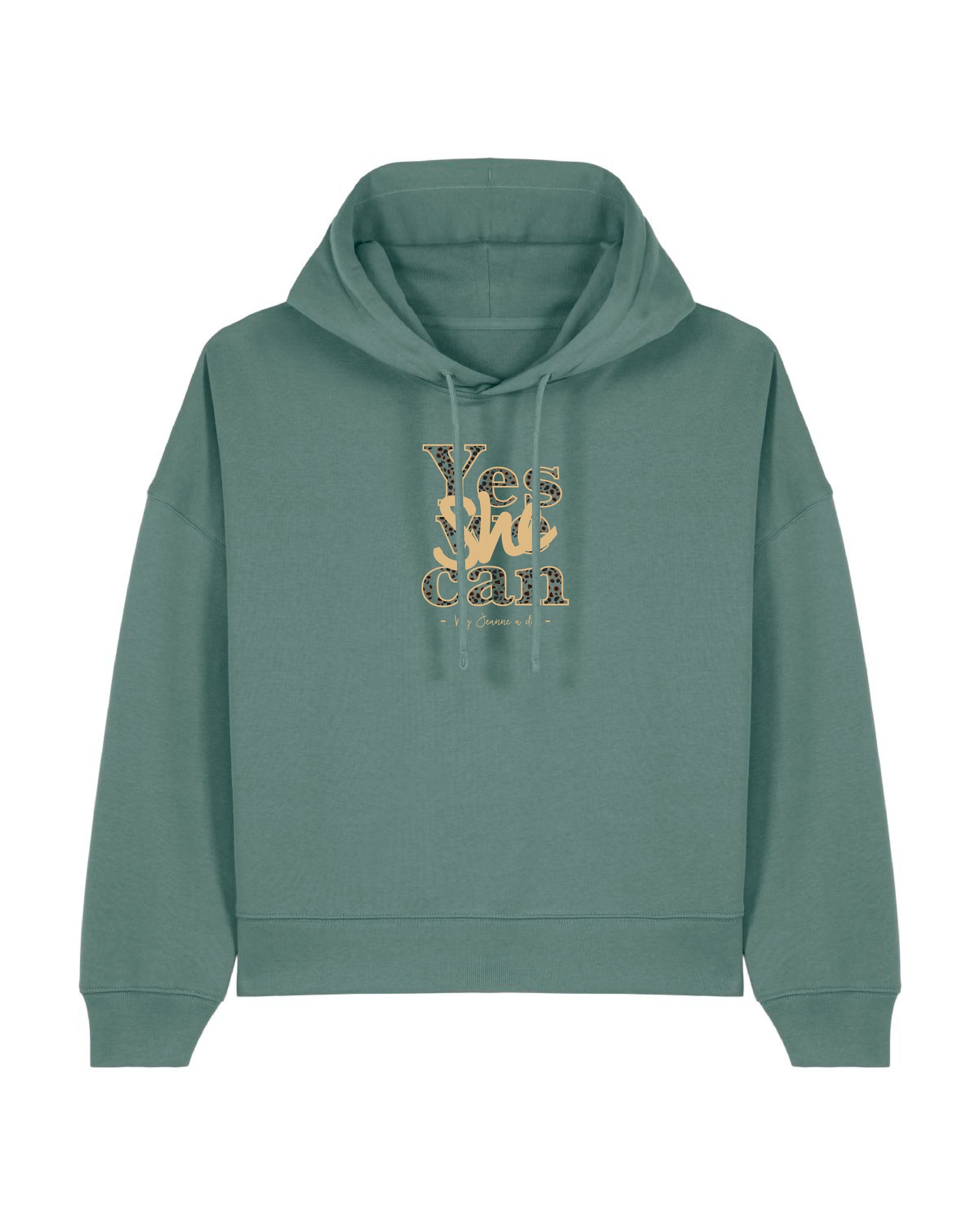 Sweat BOXY femme en coton bio à capuche "Yes she can"